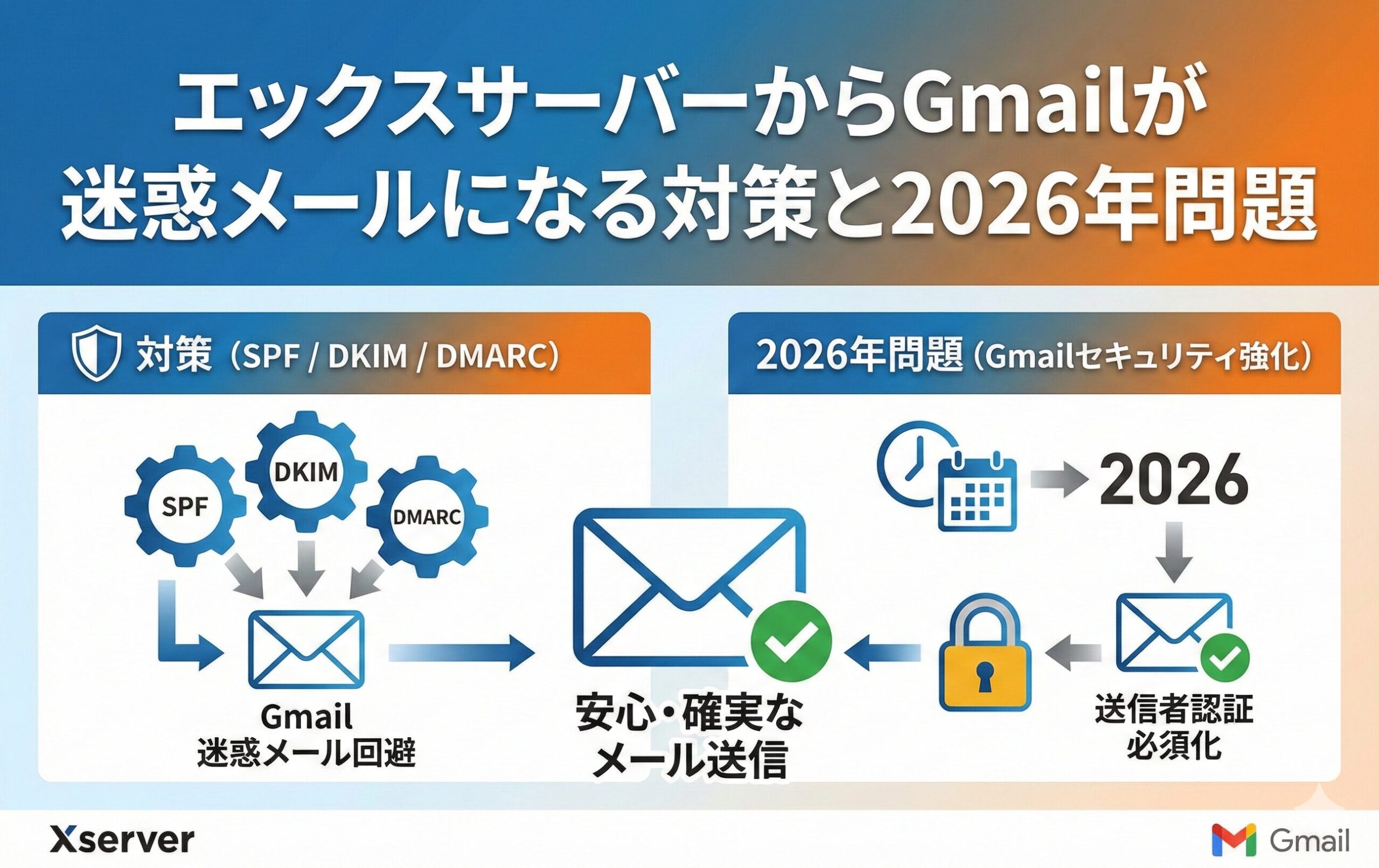 エックスサーバーからGmailが迷惑メールになる対策と2026年問題